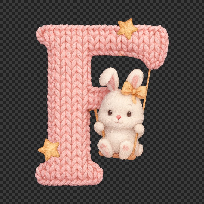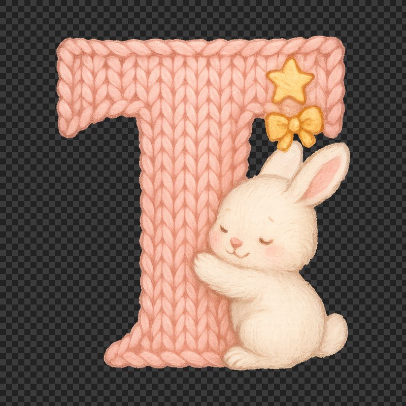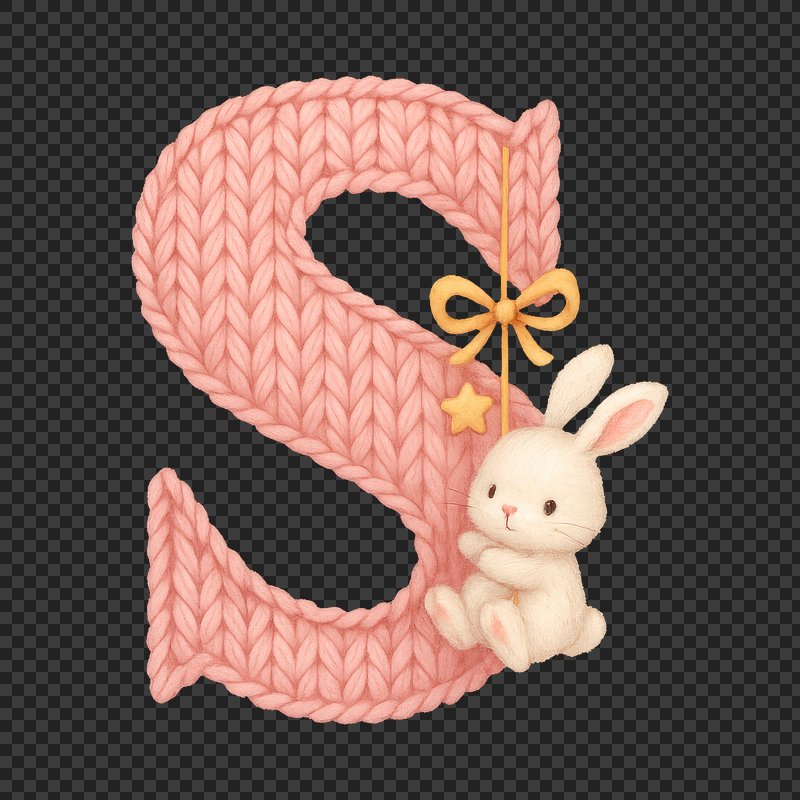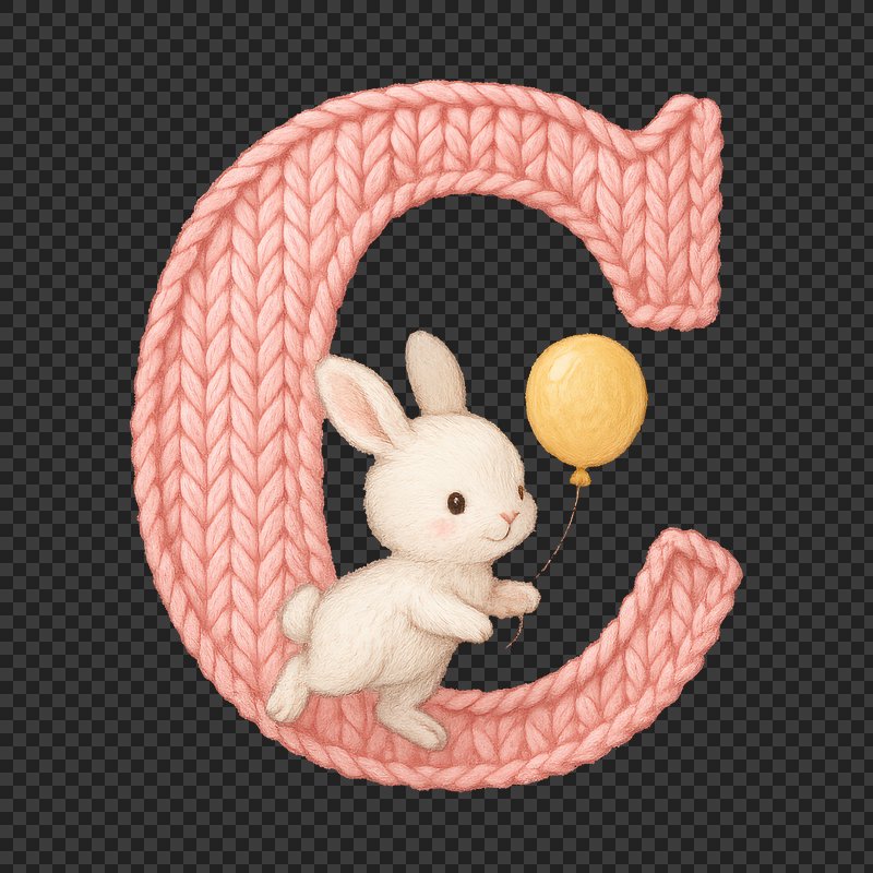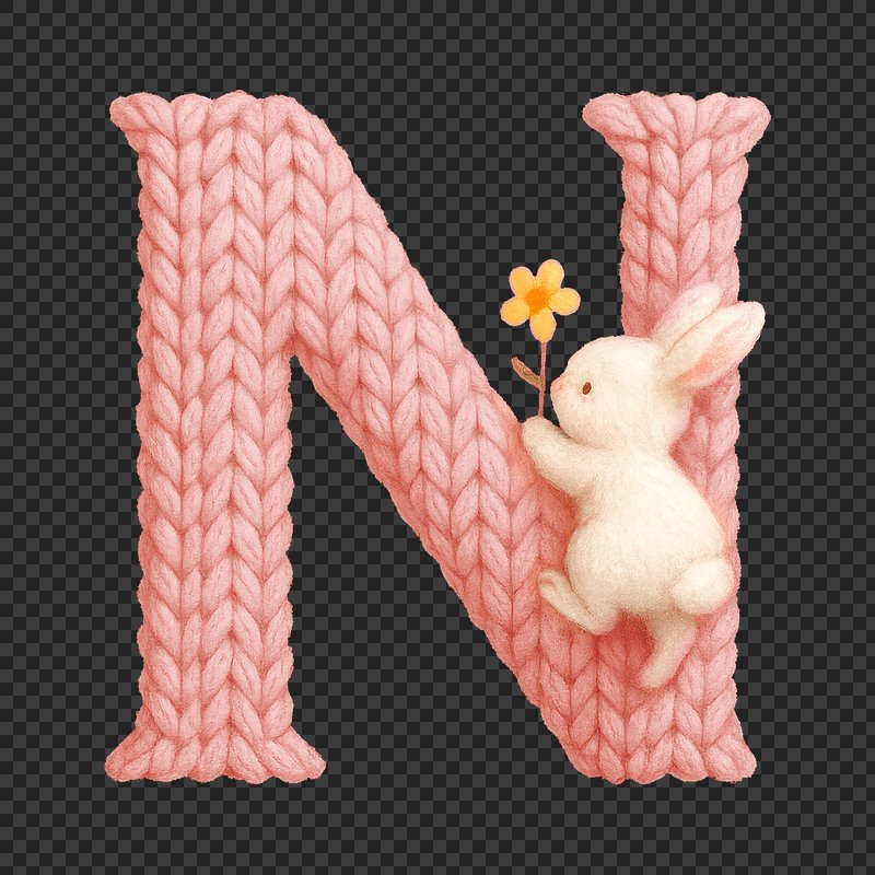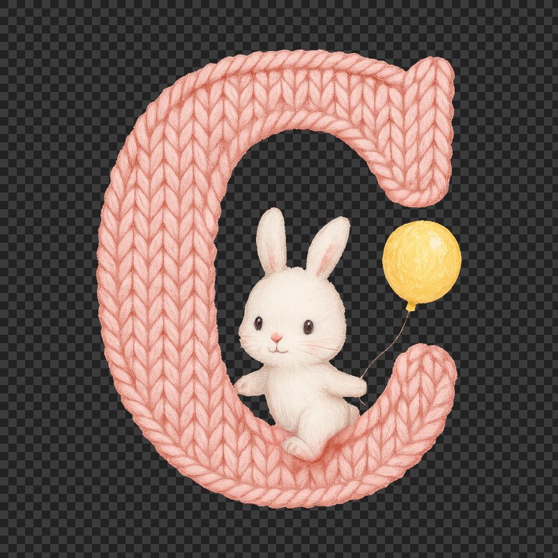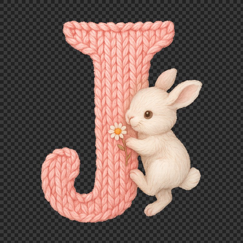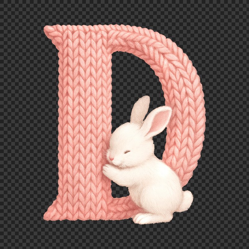 PNG Knitted letter with bunny illustration. https://www.rawpixel.com/image/24006363/png-knitted-letter-with-bunny-illustrationView license