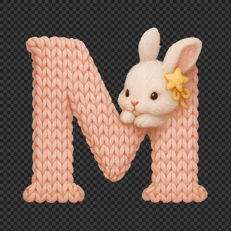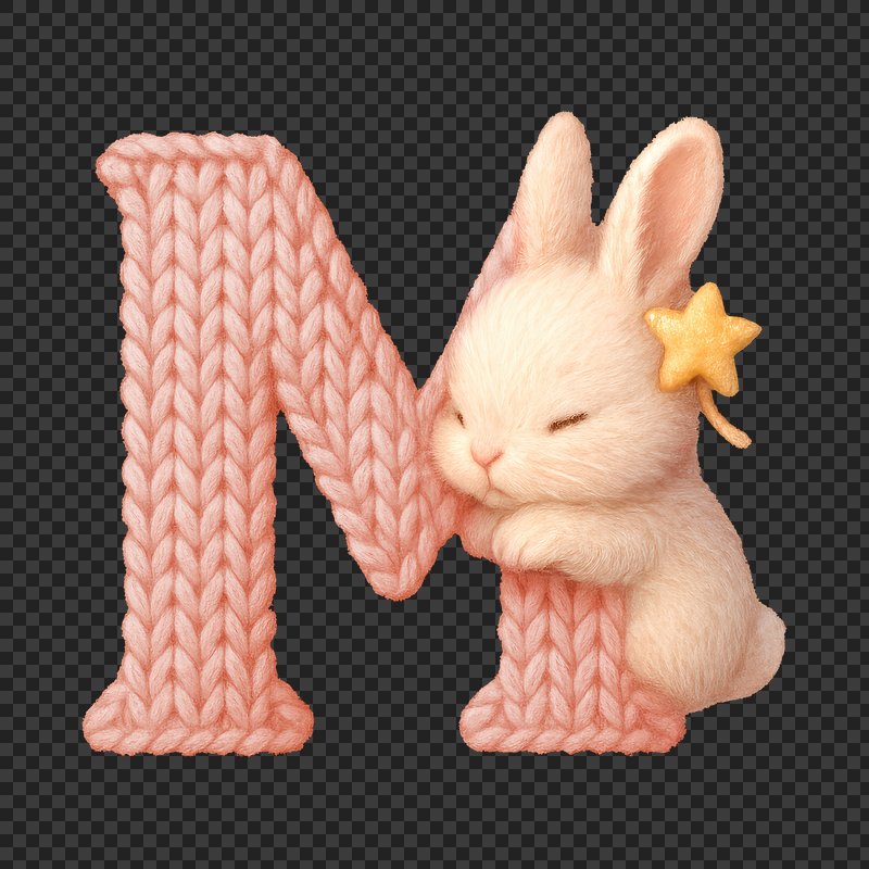 PNG Knitted letter M bunny illustration. https://www.rawpixel.com/image/24006377/png-knitted-letter-bunny-illustrationView license