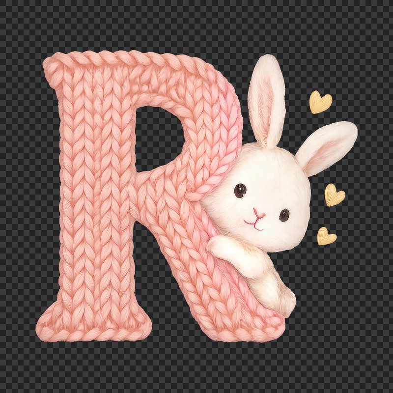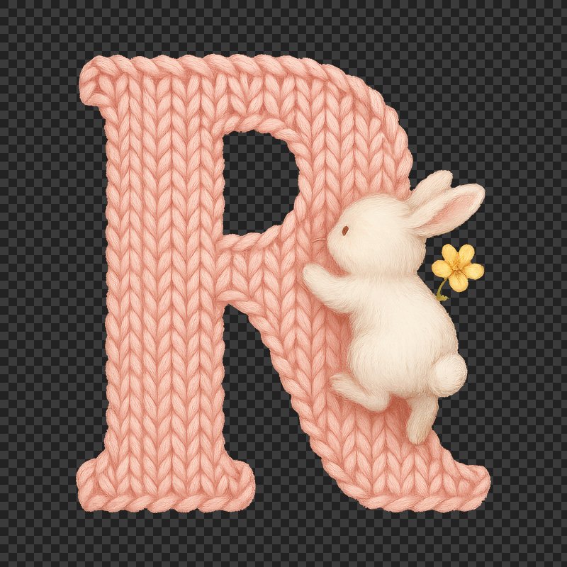 PNG Knitted letter R bunny illustration. https://www.rawpixel.com/image/24006393/png-knitted-letter-bunny-illustrationView license