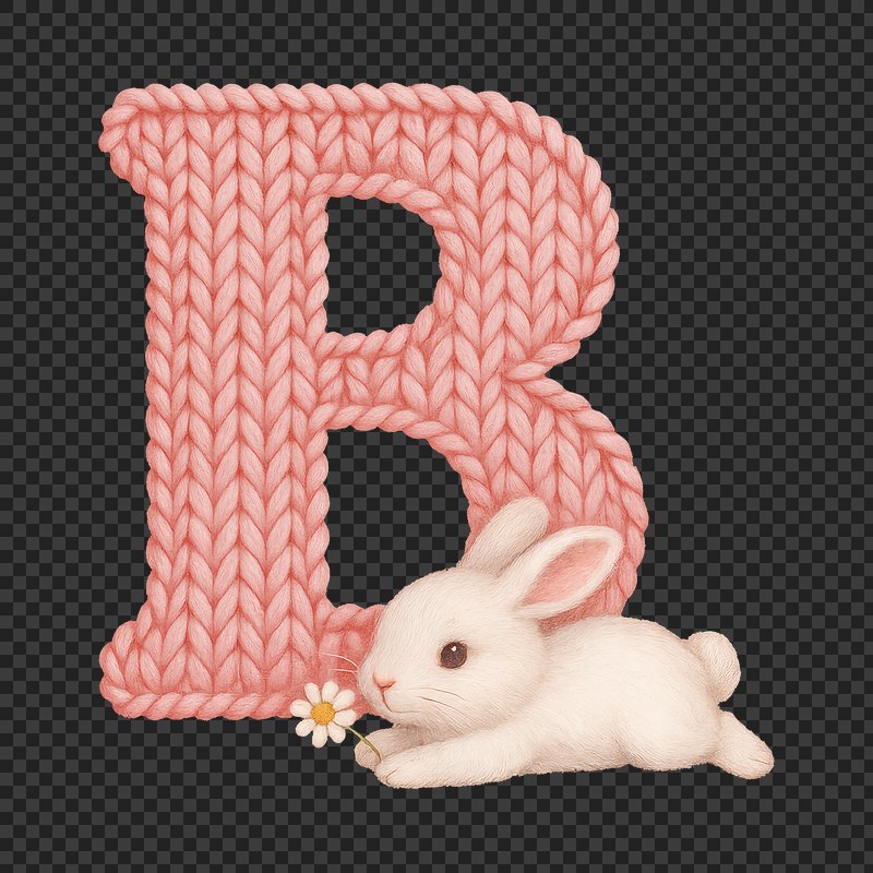 PNG Knitted letter B with bunny https://www.rawpixel.com/image/24006396/png-knitted-letter-with-bunnyView license