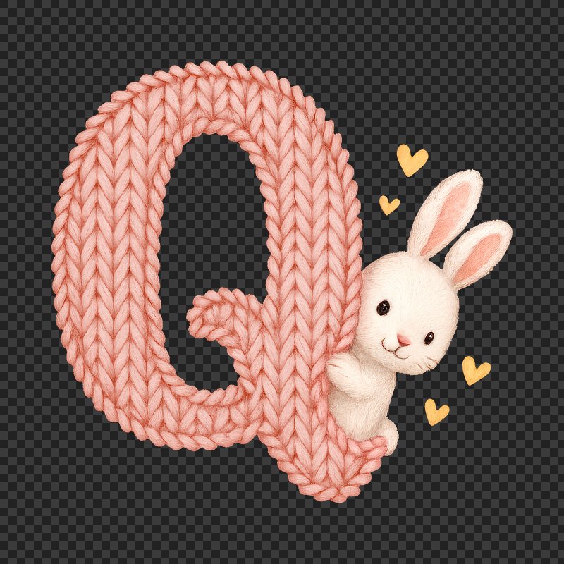 PNG Knitted letter Q with bunny https://www.rawpixel.com/image/24006423/png-knitted-letter-with-bunnyView license