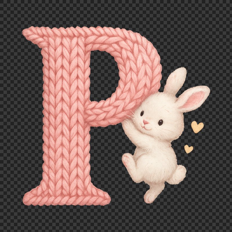 PNG Knitted letter P bunny illustration https://www.rawpixel.com/image/24006407/png-knitted-letter-bunny-illustrationView license
