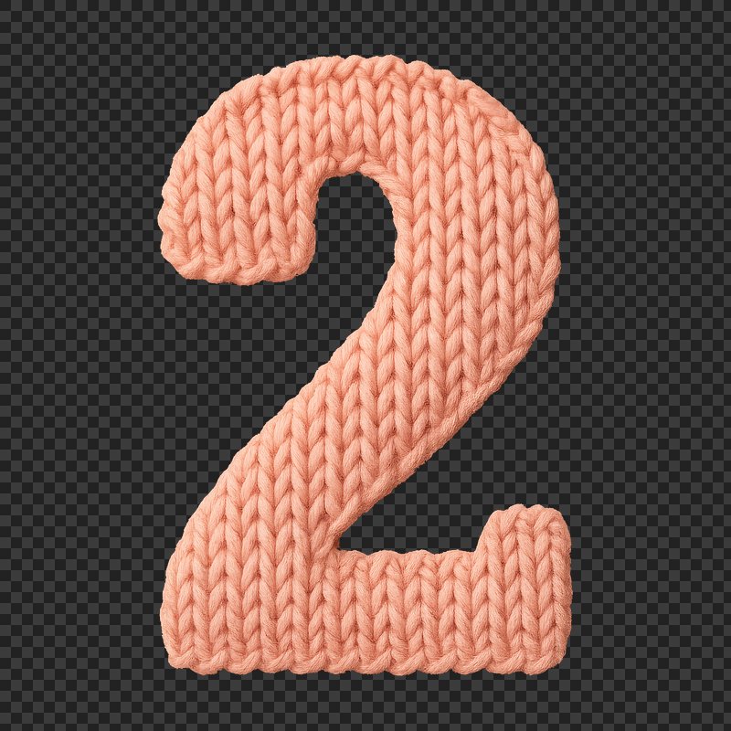 PNG Cute knitted number two. https://www.rawpixel.com/image/24006565/png-cute-knitted-number-twoView license