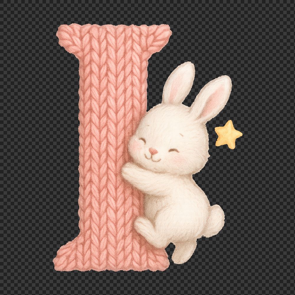PNG Cute bunny hugging knitted letter. https://www.rawpixel.com/image/24006378/png-cute-bunny-hugging-knitted-letterView license