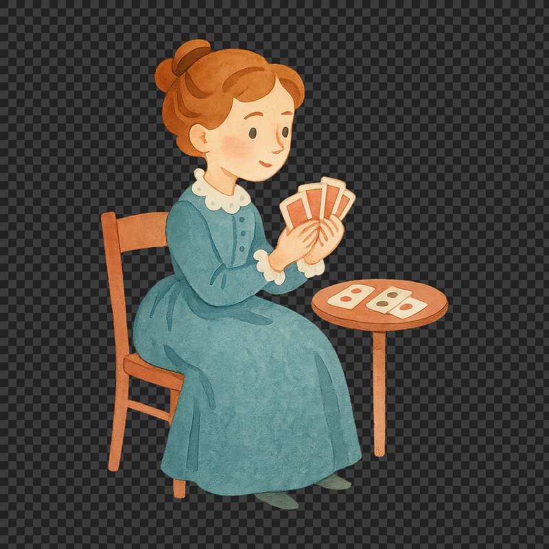 PNG Vintage woman playing card game. https://www.rawpixel.com/image/19059038/png-vintage-woman-playing-card-gameView license