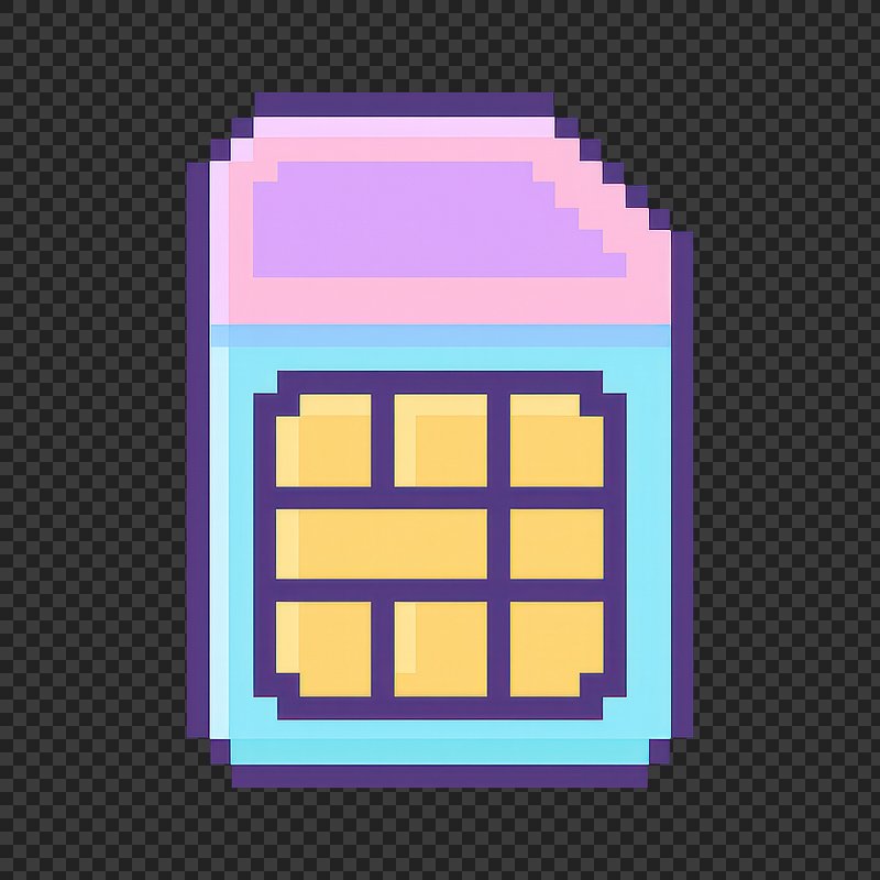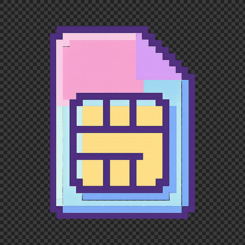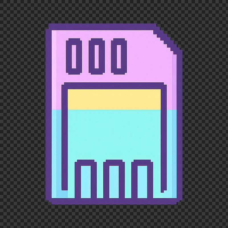 PNG Pixel art SIM card illustration. https://www.rawpixel.com/image/21472469/png-pixel-art-sim-card-illustrationView license