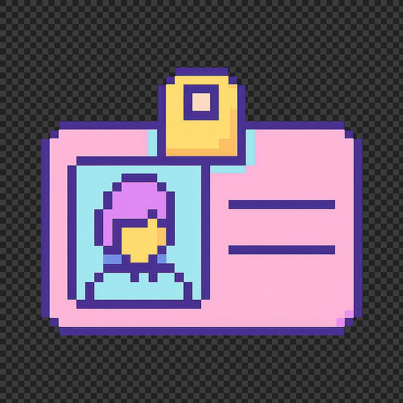 PNG Pixelated ID badge illustration. https://www.rawpixel.com/image/21826917/png-pixelated-badge-illustrationView license