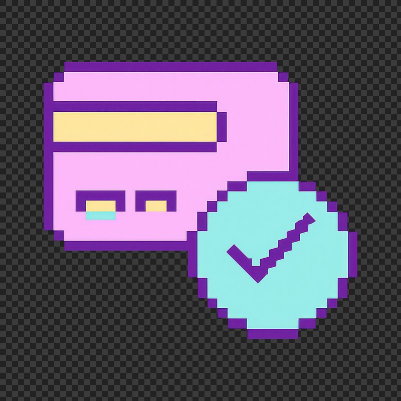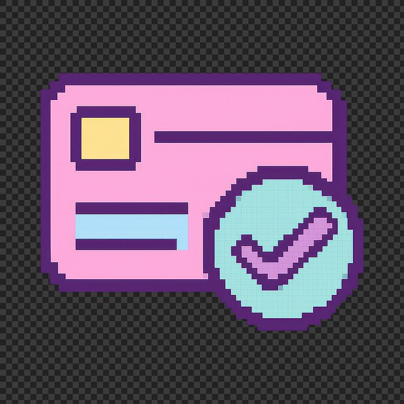 PNG Pixelated credit card with checkmark https://www.rawpixel.com/image/21824515/png-pixelated-credit-card-with-checkmarkView license