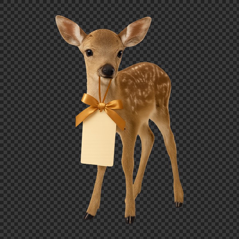 PNG Adorable fawn with gift tag. https://www.rawpixel.com/image/18828301/png-adorable-fawn-with-gift-tagView license