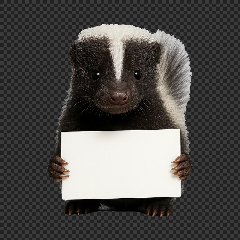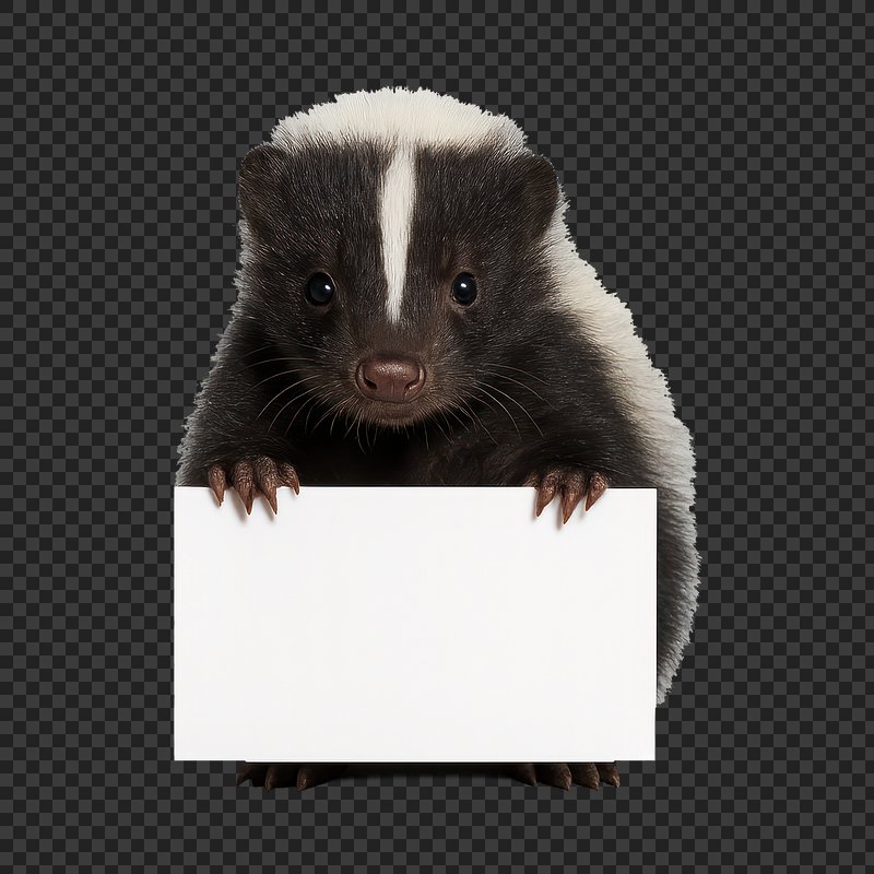 PNG Skunk holding blank sign. https://www.rawpixel.com/image/18901118/png-skunk-holding-blank-signView license