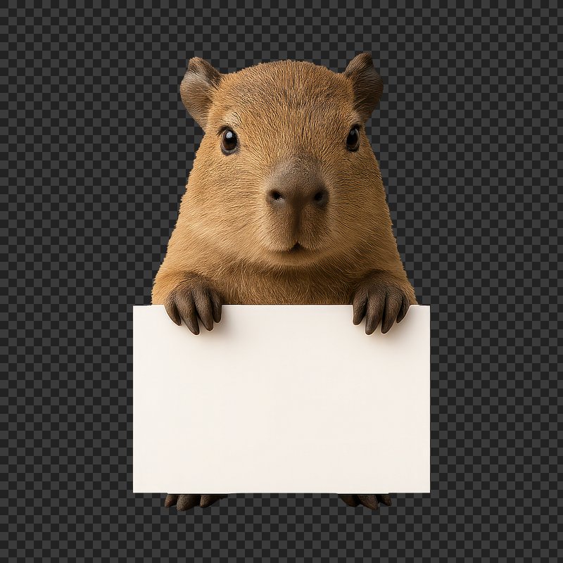 PNG Capybara holding blank sign https://www.rawpixel.com/image/18896996/png-capybara-holding-blank-signView license