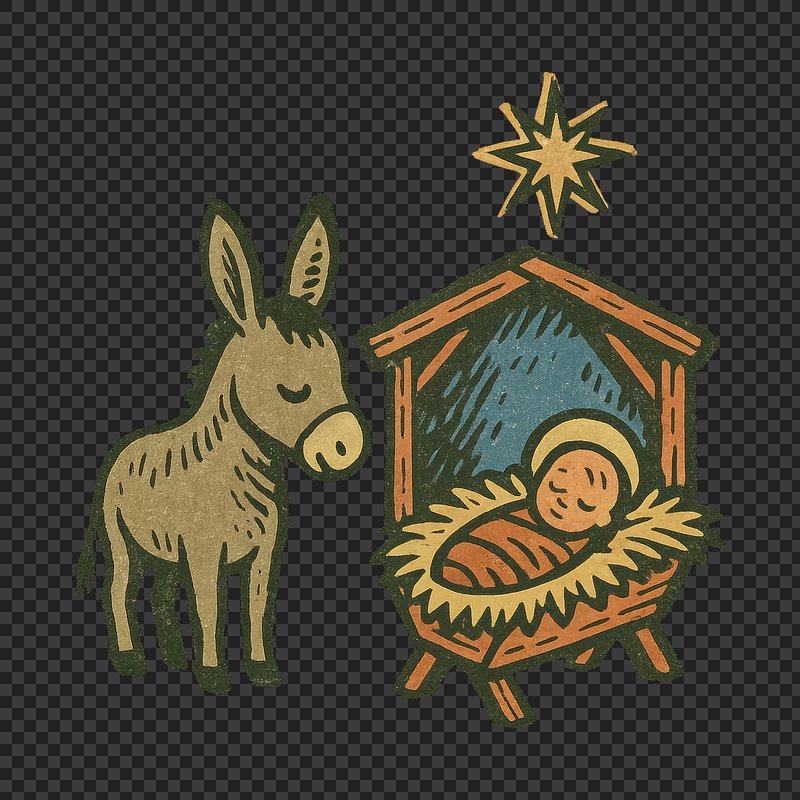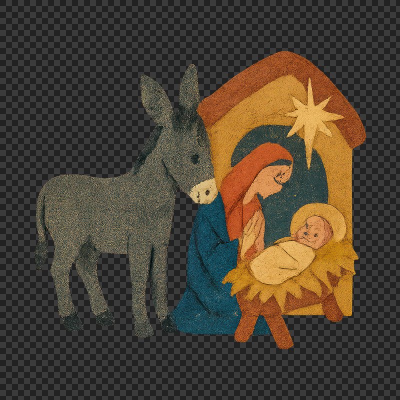 PNG Nativity scene with donkey illustration. https://www.rawpixel.com/image/22994217/png-nativity-scene-with-donkey-illustrationView license