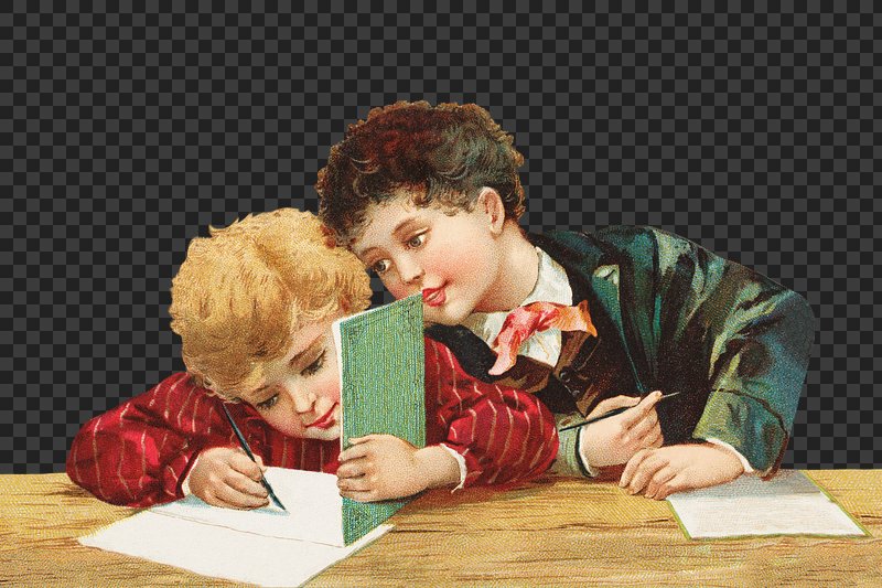 Boys png doing homework vintage illustration, transparent background. Remixed by rawpixel. https://www.rawpixel.com/image/11115491/png-face-paper-borderView license