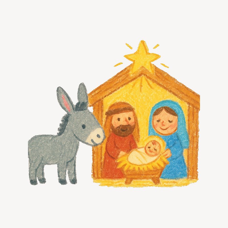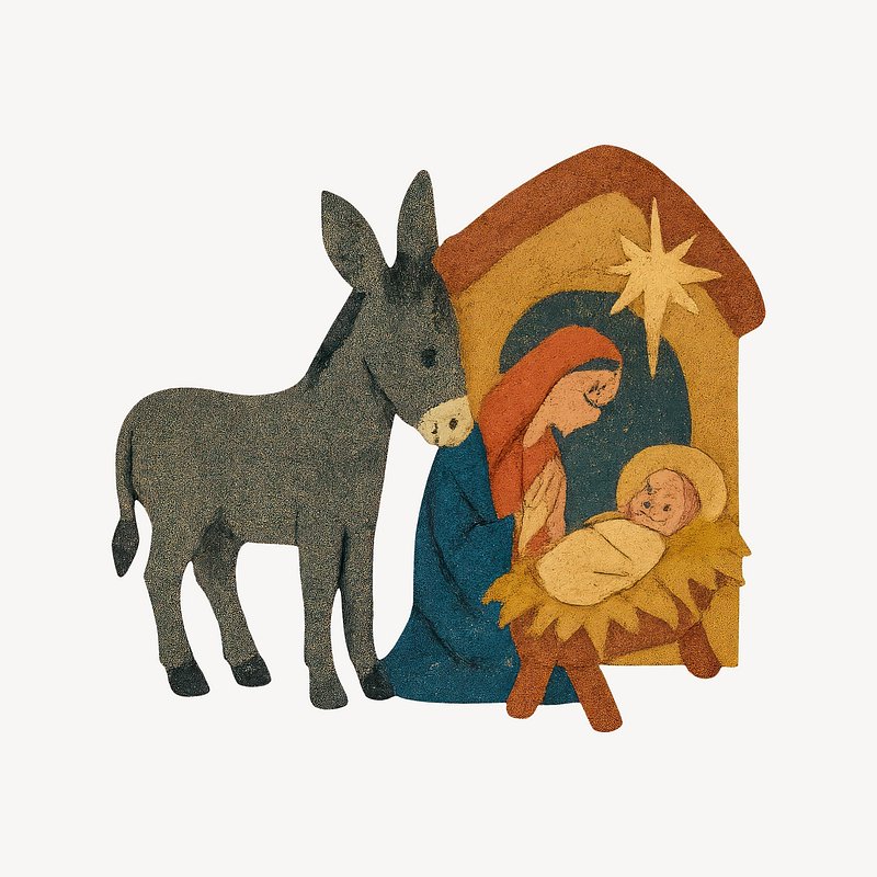 Nativity scene with donkey illustration. https://www.rawpixel.com/image/23047919/nativity-scene-with-donkey-illustrationView license