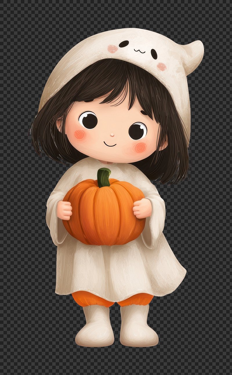 PNG Cute child ghost holding pumpkin. https://www.rawpixel.com/image/20885093/png-cute-child-ghost-holding-pumpkinView license