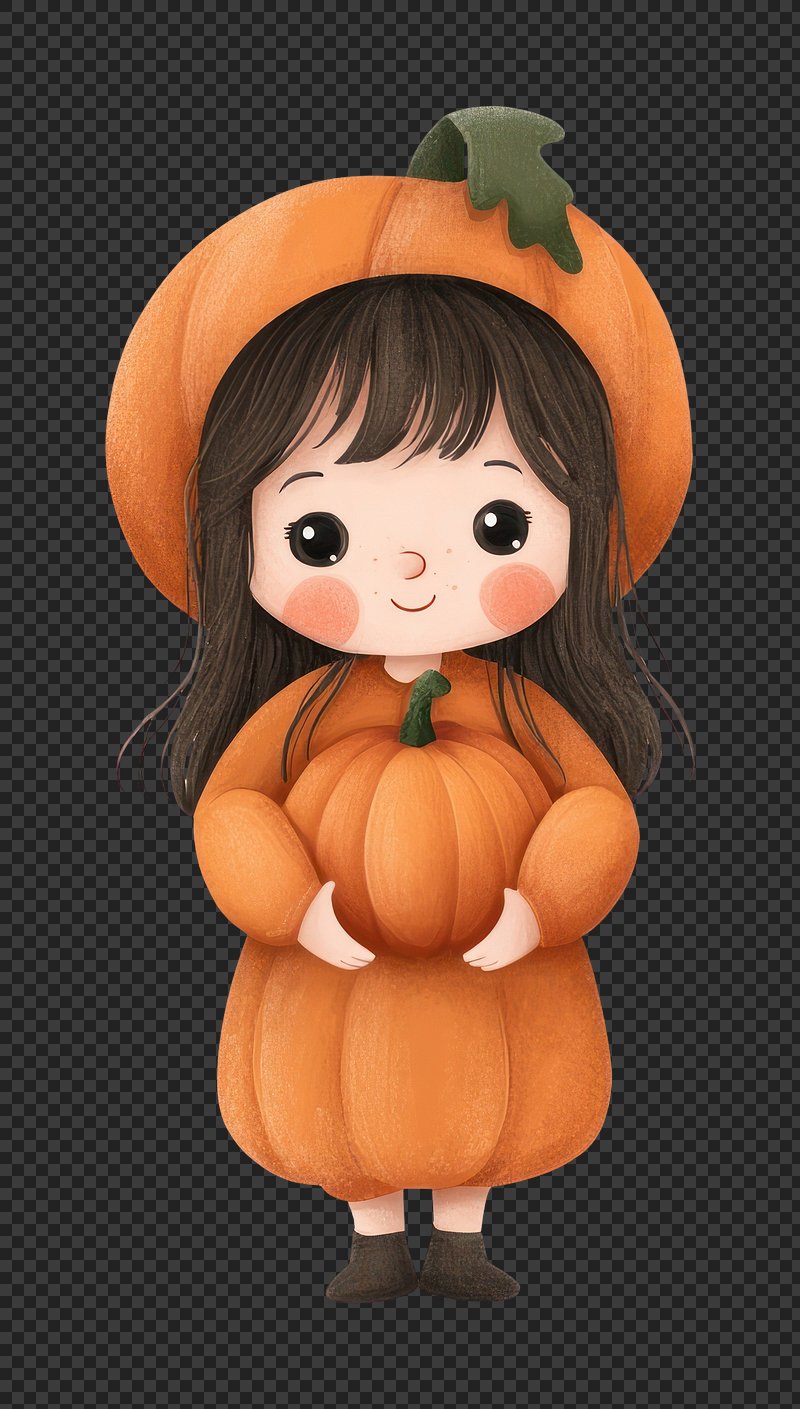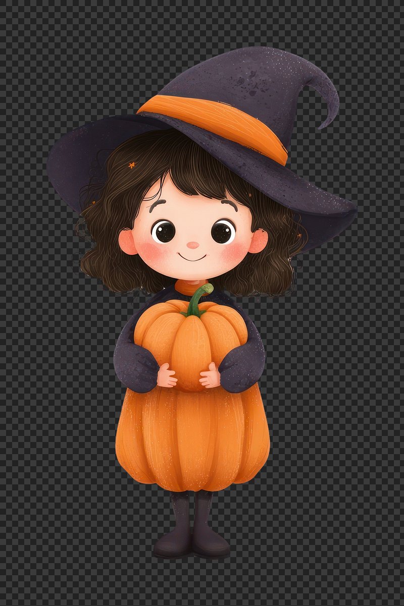 PNG Cute witch with pumpkin costume. https://www.rawpixel.com/image/20888432/png-cute-witch-with-pumpkin-costumeView license