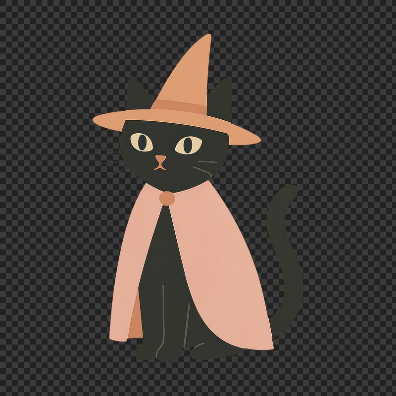 PNG Charming cat in witch costume. https://www.rawpixel.com/image/23987697/png-charming-cat-witch-costumeView license