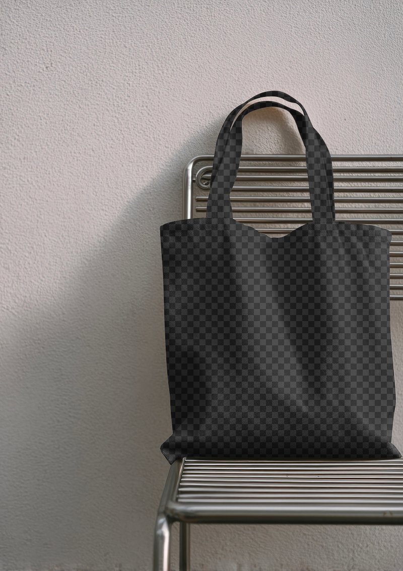 Tote bag mockup on metal bench, transparent design https://www.rawpixel.com/image/25488549/tote-bag-mockup-metal-bench-transparent-designView license