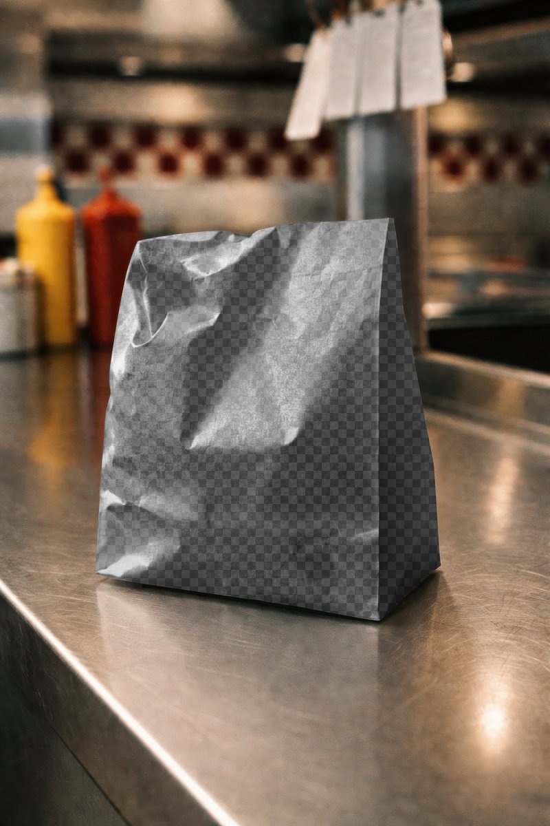 Realistic fast-food bag mockup png, transparent design https://www.rawpixel.com/image/25540235/realistic-fast-food-bag-mockup-png-transparent-designView license