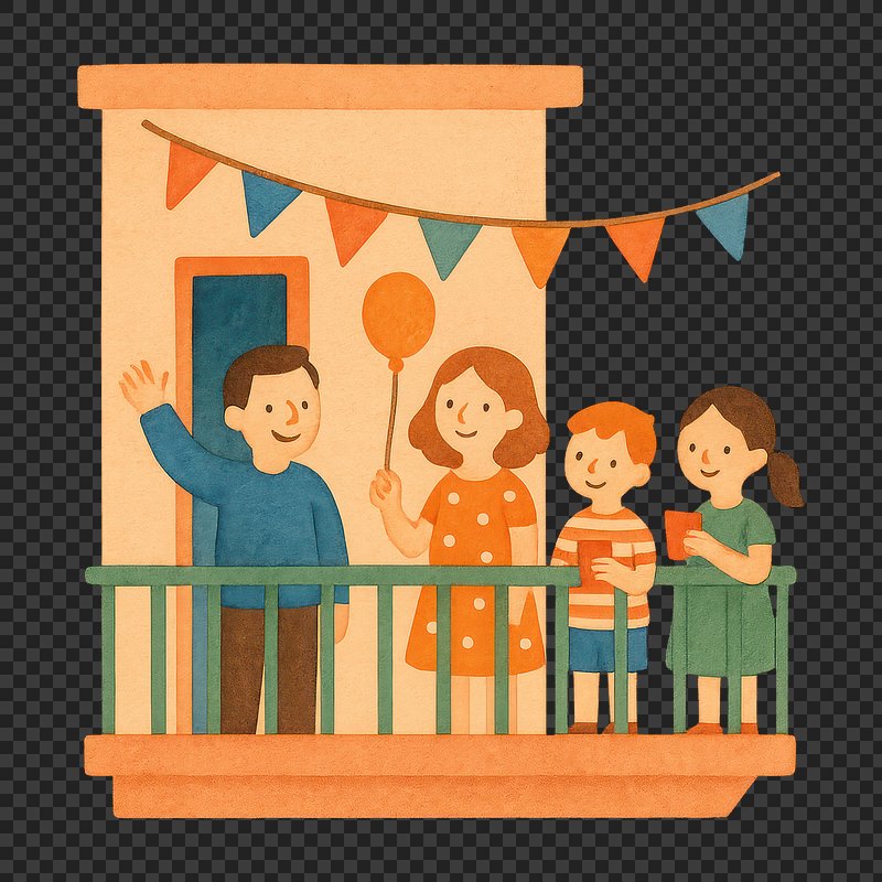 PNG Family celebration on balcony illustration. https://www.rawpixel.com/image/18866151/png-family-celebration-balcony-illustrationView license