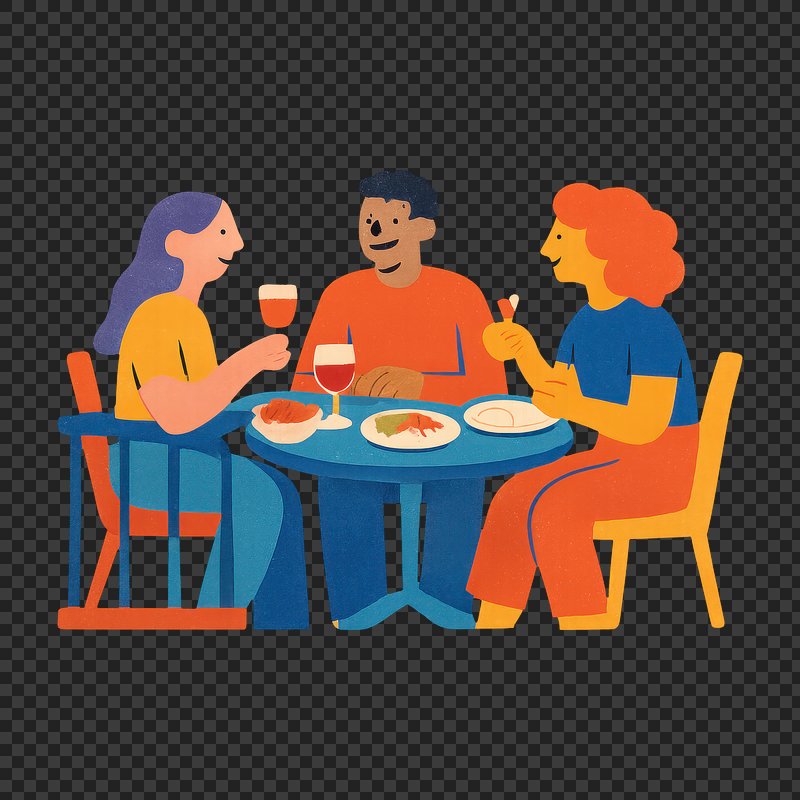PNG Friends enjoying dinner together. https://www.rawpixel.com/image/22101782/png-friends-enjoying-dinner-togetherView license
