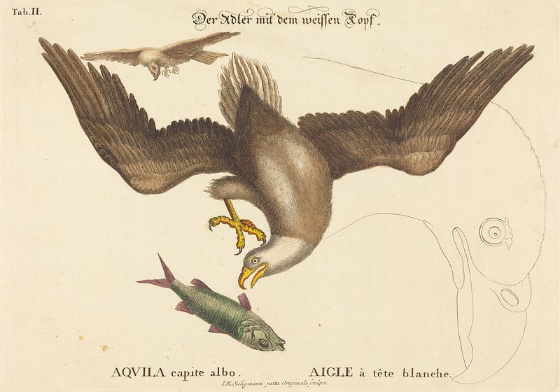 The Bald Eagle (Falco leucocephalus) (probably 1743/1762) by Johann Michael Seligmann and Mark Catesby https://www.rawpixel.com/image/10018927/image-animal-bird-artFree Image from public domain license