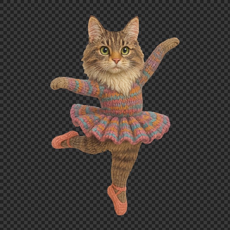 PNG Knitted cat ballerina in tutu. https://www.rawpixel.com/image/24445703/png-knitted-cat-ballerina-tutuView license