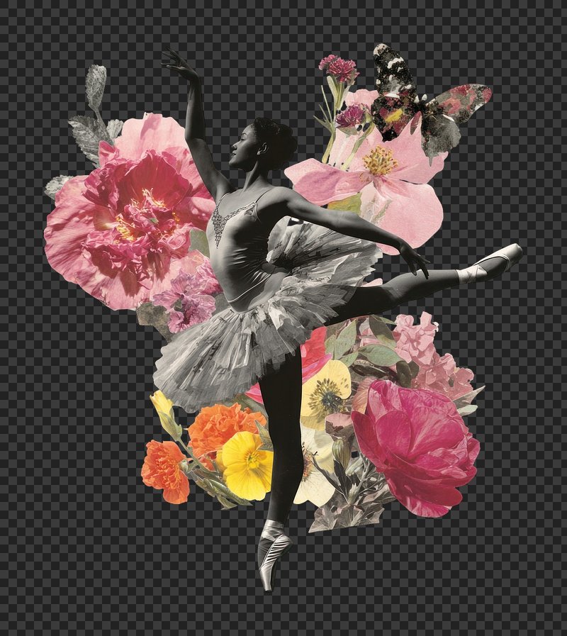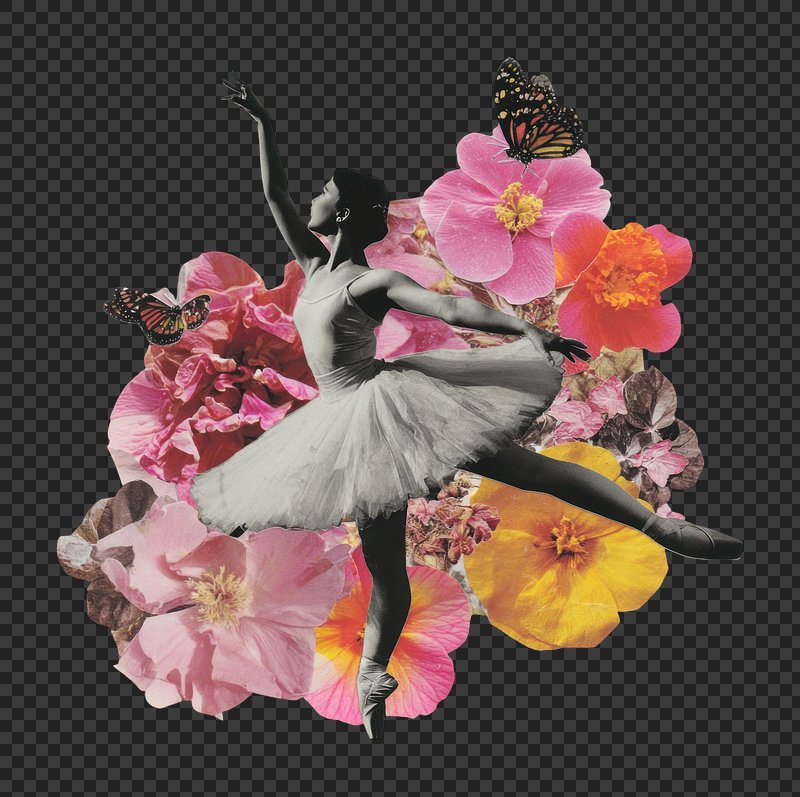 PNG Ballet dancer with floral collage https://www.rawpixel.com/image/25816483/png-ballet-dancer-with-floral-collageView license