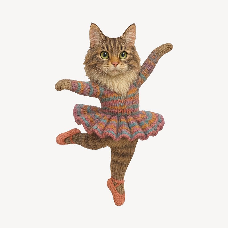 PNG Knitted cat ballerina illustration. https://www.rawpixel.com/image/24524097/png-knitted-cat-ballerina-illustrationView license