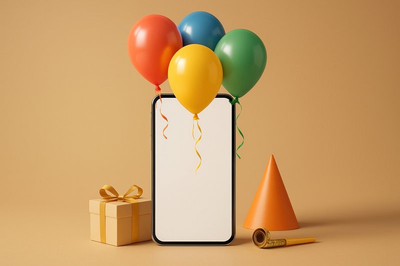 Smartphone with gifts and balloons https://www.rawpixel.com/image/24364559/smartphone-with-gifts-and-balloonsView license