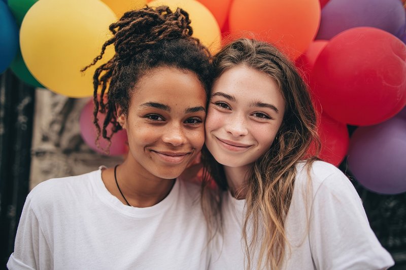 Joyful friends with colorful balloons https://www.rawpixel.com/image/25311200/joyful-friends-with-colorful-balloonsView license