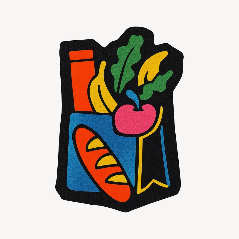 Colorful grocery bag illustration https://www.rawpixel.com/image/24685240/colorful-grocery-bag-illustrationView license