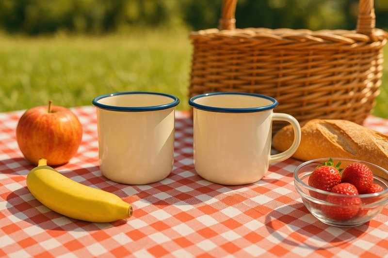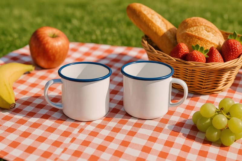 Picnic setup with mugs outdoors. https://www.rawpixel.com/image/24385055/picnic-setup-with-mugs-outdoorsView license