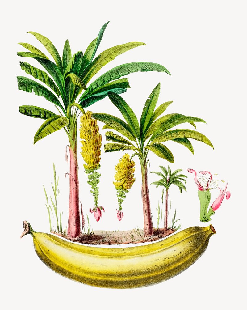 Lush tropical banana tree illustration. https://www.rawpixel.com/image/25253870/lush-tropical-banana-tree-illustrationView license