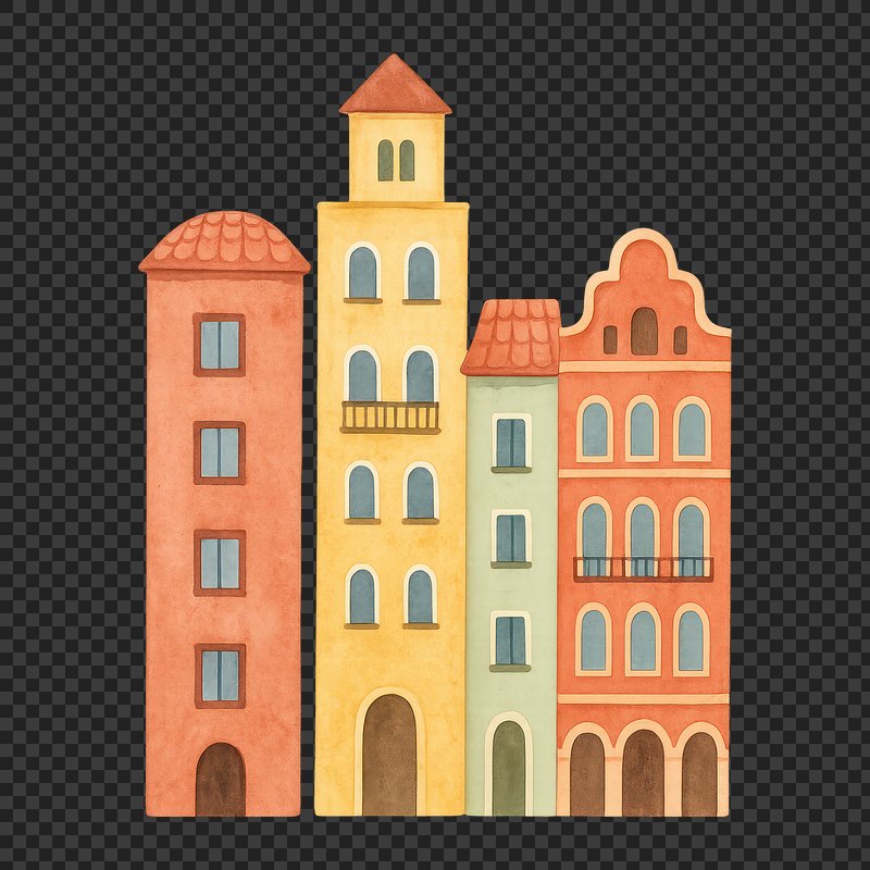 PNG Charming colorful European architecture. https://www.rawpixel.com/image/18624207/png-charming-colorful-european-architectureView license