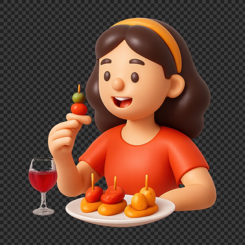Illustration of enjoying delicious tapas. https://www.rawpixel.com/image/20672947/illustration-enjoying-delicious-tapasView license