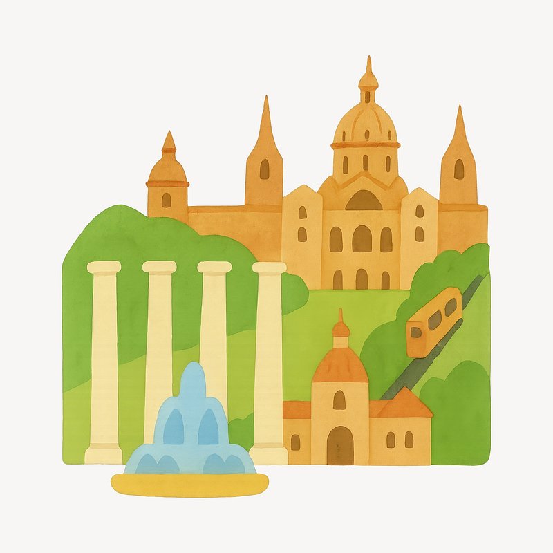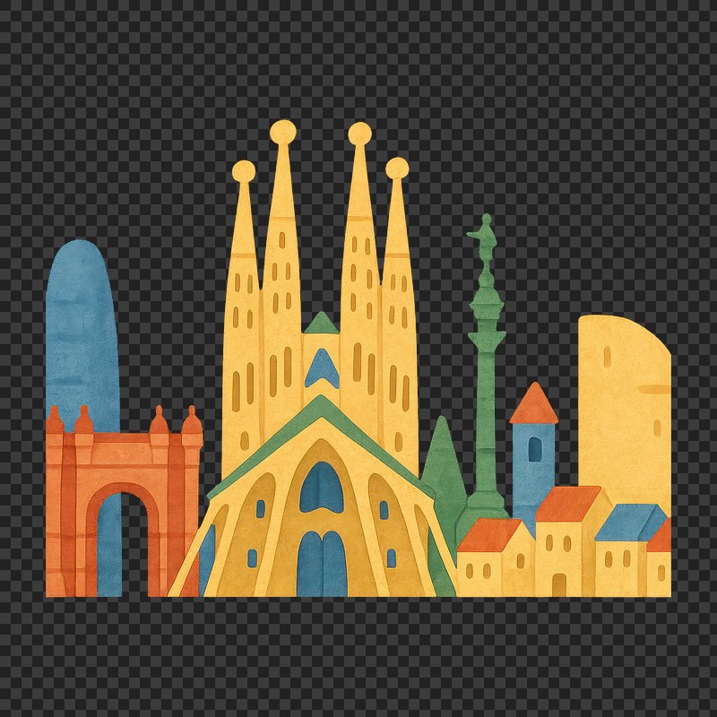 PNG Colorful Barcelona landmark illustration. https://www.rawpixel.com/image/18865475/png-colorful-barcelona-landmark-illustrationView license