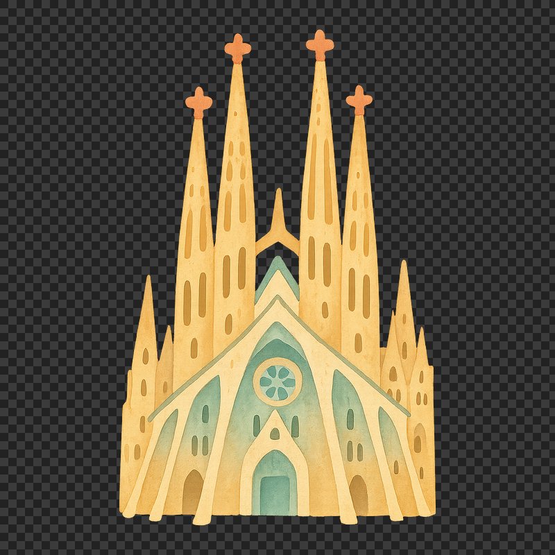 PNG Iconic Barcelona architectural masterpiece illustration. https://www.rawpixel.com/image/15200810/png-iconic-barcelona-architectural-masterpiece-illustrationView license