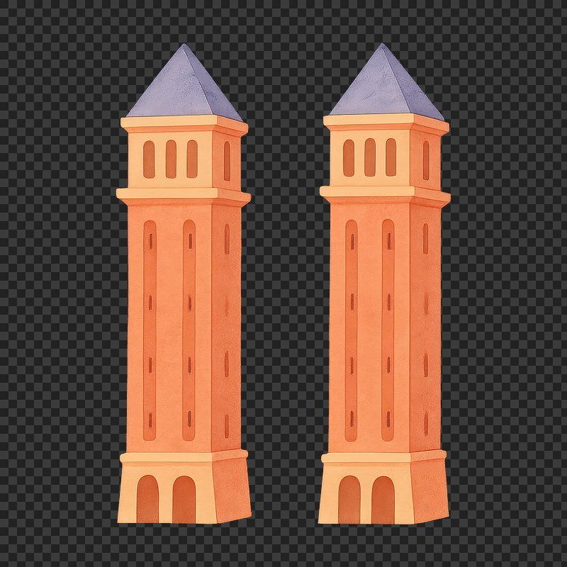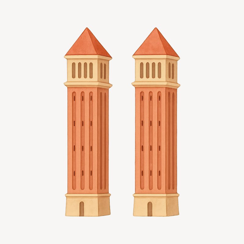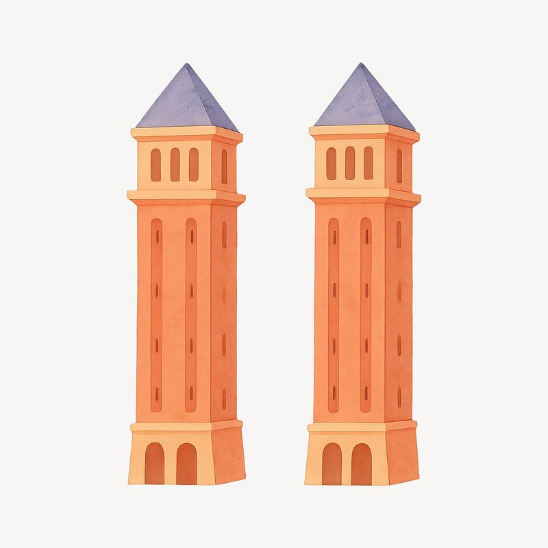 Twin terracotta towers illustration. https://www.rawpixel.com/image/20647710/twin-terracotta-towers-illustrationView license