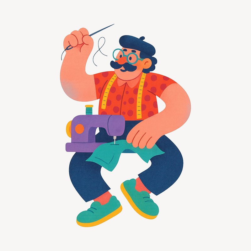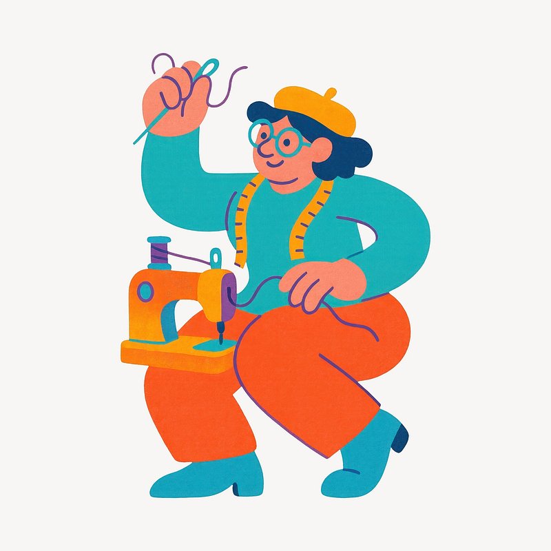 Colorful illustration of tailor sewing. https://www.rawpixel.com/image/22402875/colorful-illustration-tailor-sewingView license