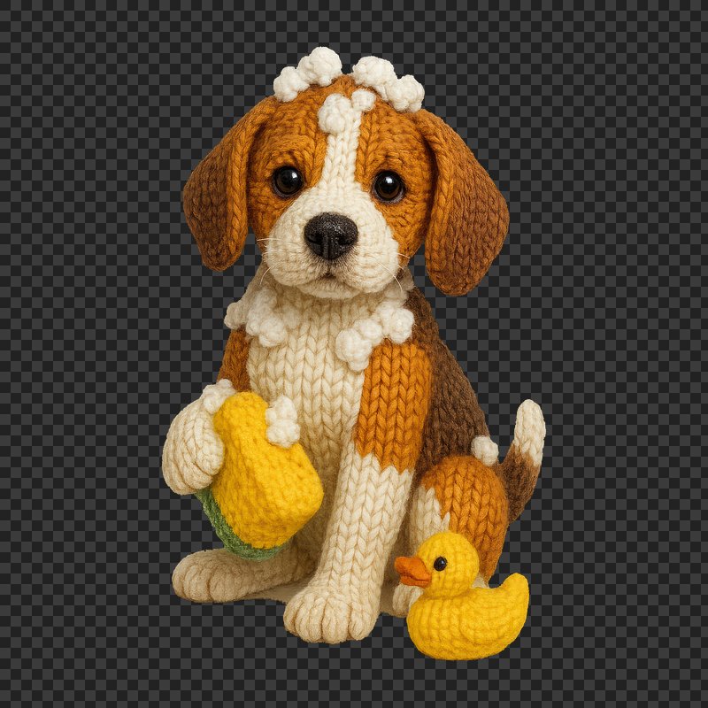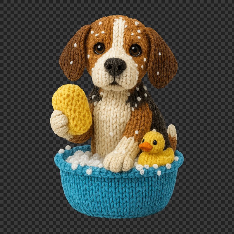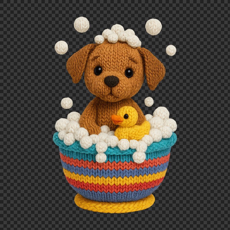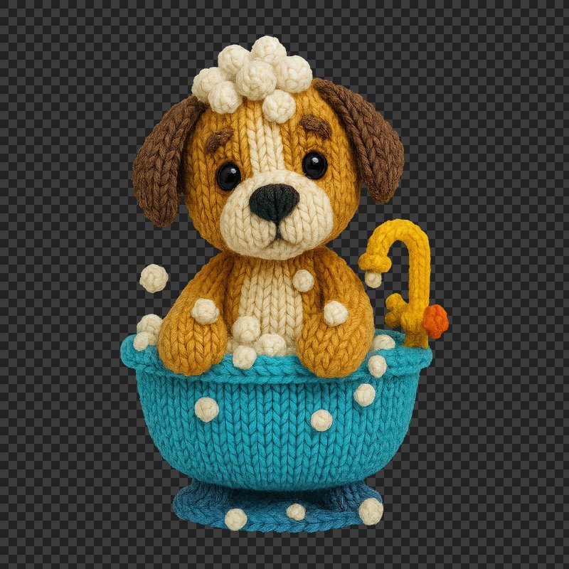 PNG Adorable knitted puppy bath. https://www.rawpixel.com/image/24442645/png-adorable-knitted-puppy-bathView license