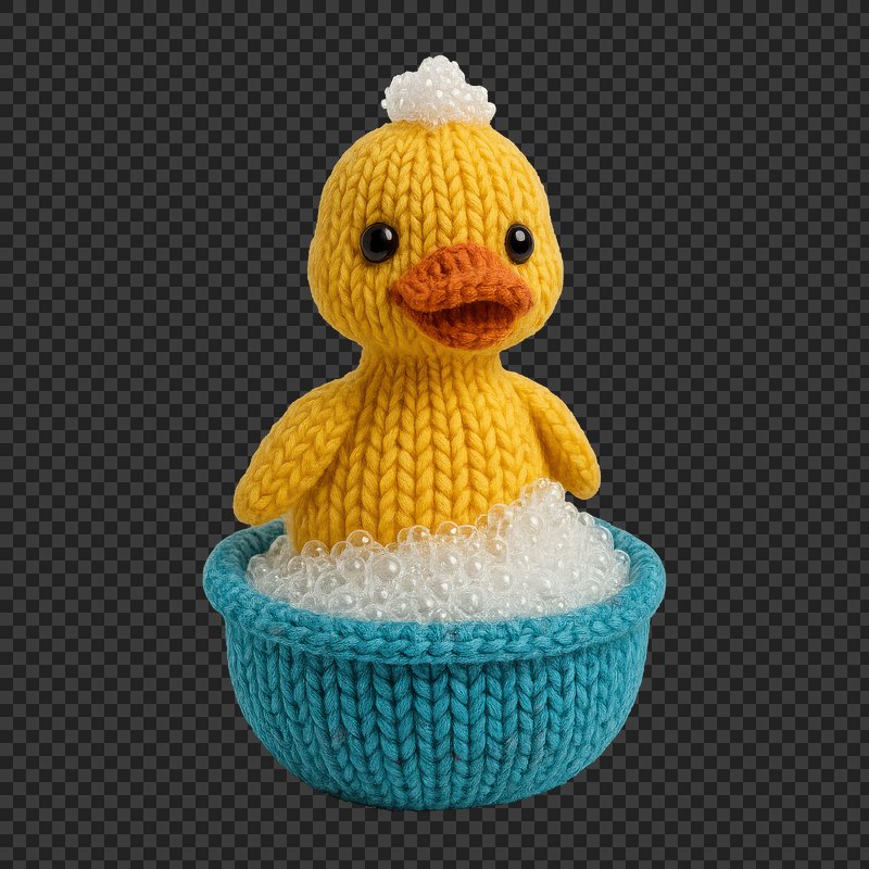 PNG Cute knitted duckling in bath. https://www.rawpixel.com/image/24443176/png-cute-knitted-duckling-bathView license
