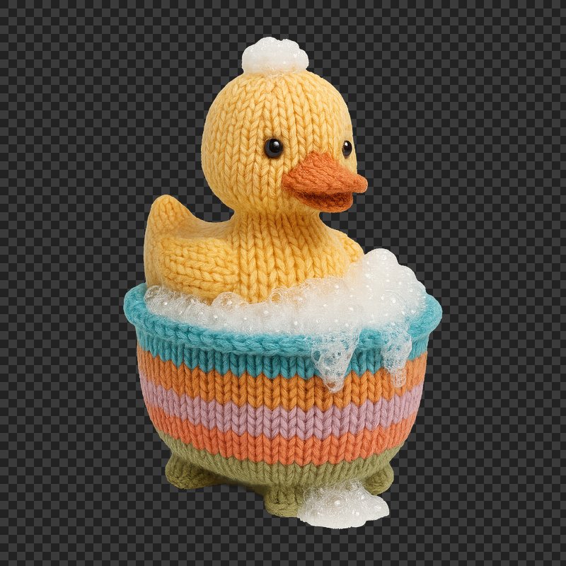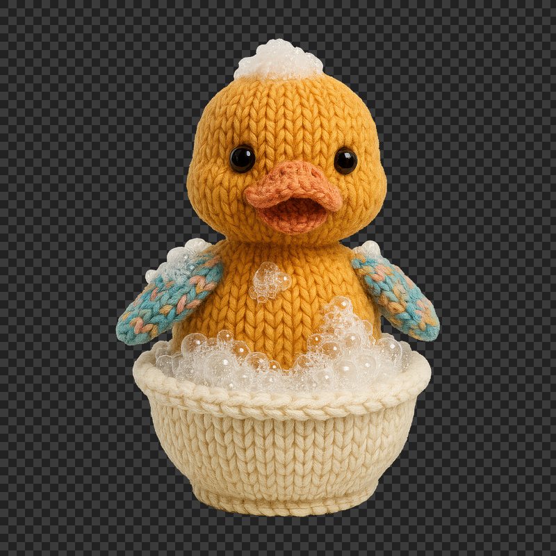 PNG Cute knitted duckling bath https://www.rawpixel.com/image/24443154/png-cute-knitted-duckling-bathView license