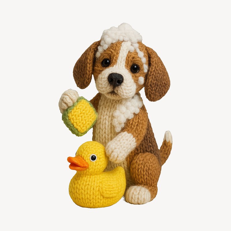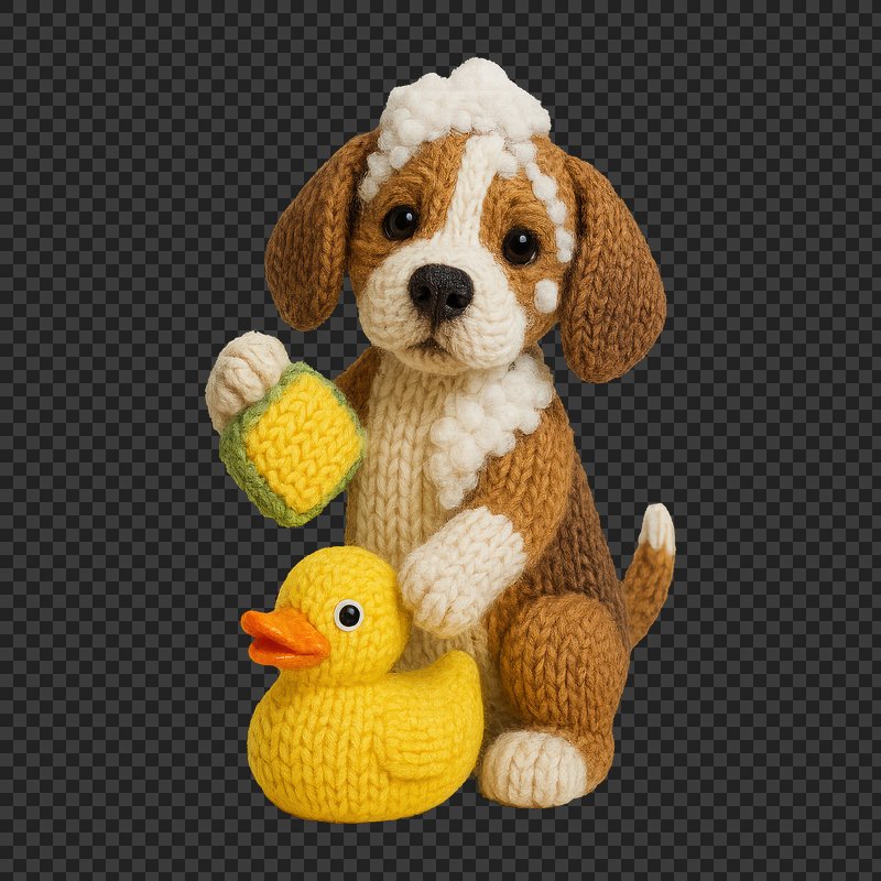 PNG Knitted puppy bath time illustration. https://www.rawpixel.com/image/24442637/png-knitted-puppy-bath-time-illustrationView license