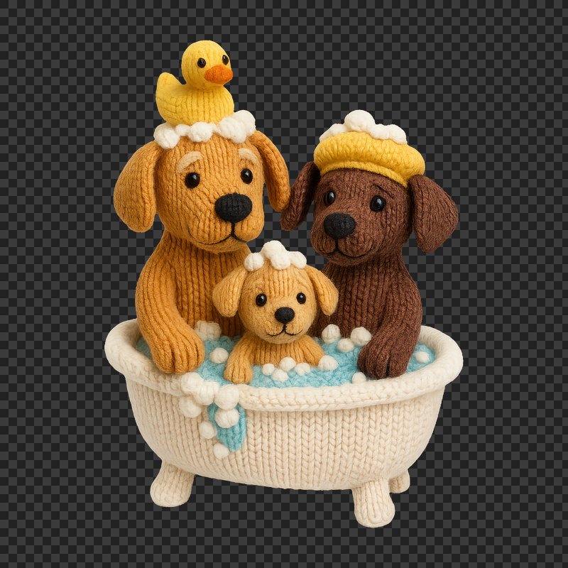PNG Knitted dogs enjoy bubble bath. https://www.rawpixel.com/image/24445327/png-knitted-dogs-enjoy-bubble-bathView license