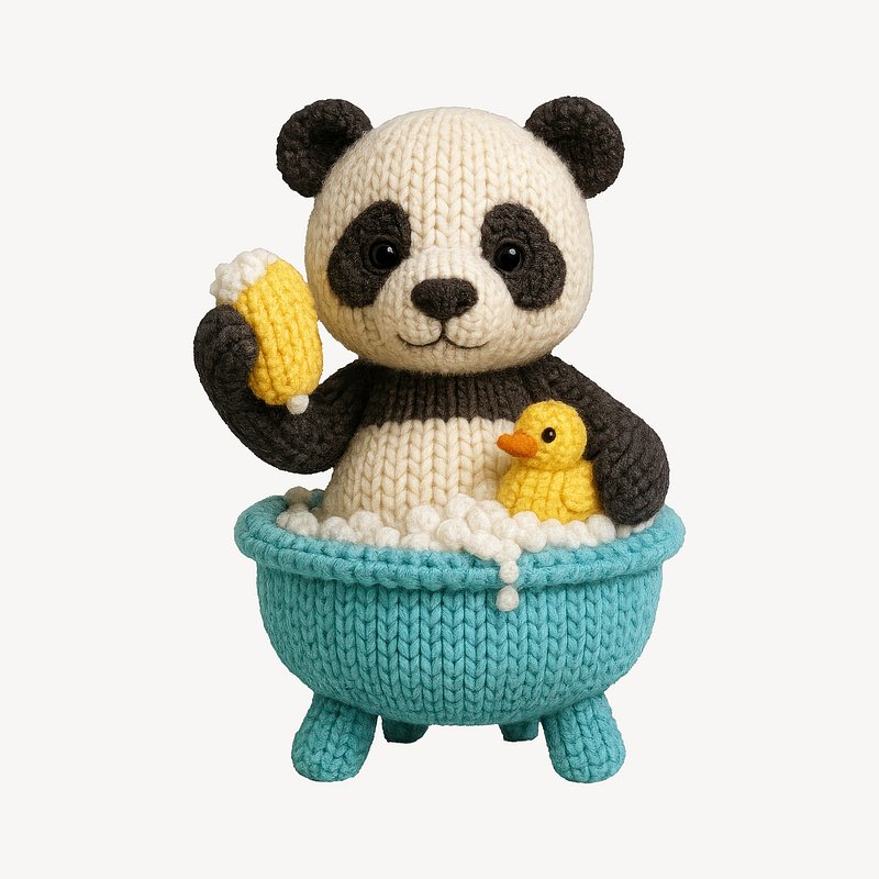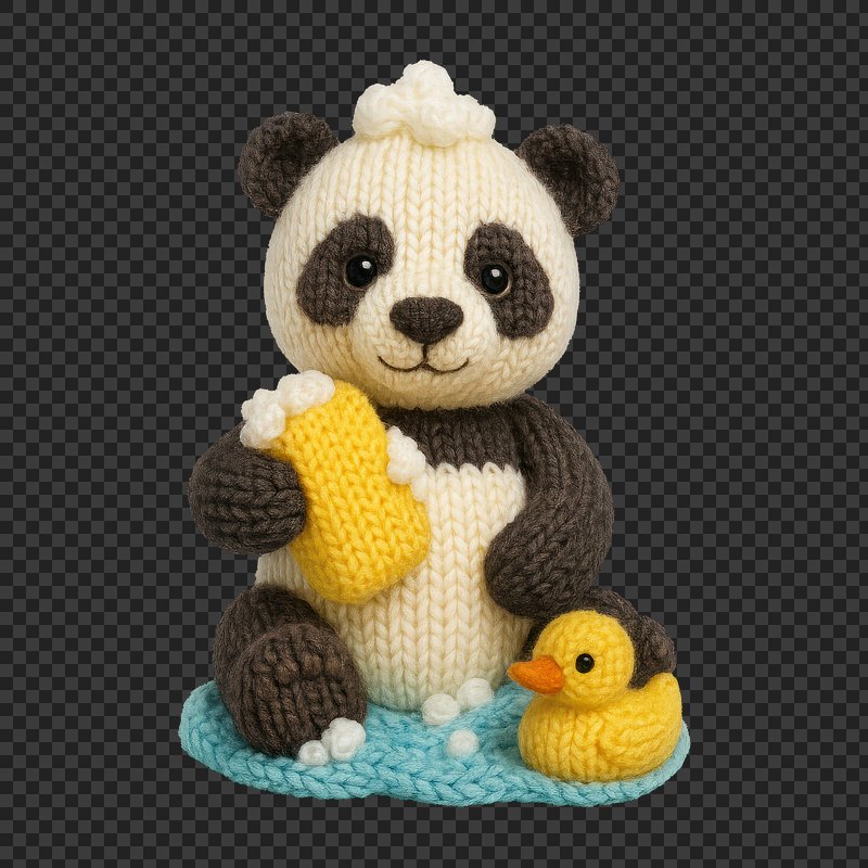 Cute knitted panda bathing https://www.rawpixel.com/image/24655946/cute-knitted-panda-bathingView license