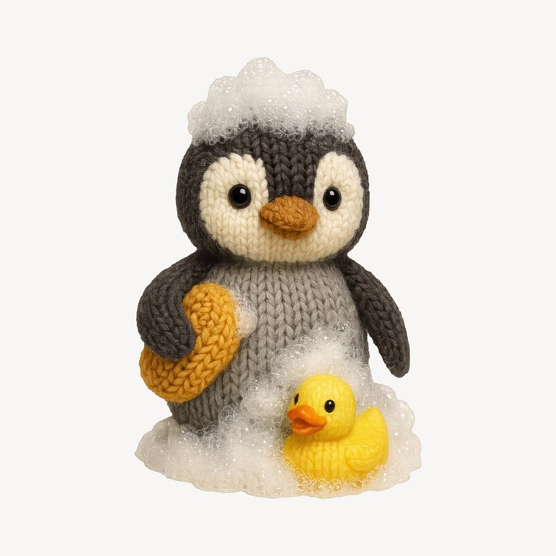 Adorable knitted penguin bath. https://www.rawpixel.com/image/24657901/adorable-knitted-penguin-bathView license
