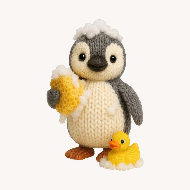 Cute knitted penguin bath time https://www.rawpixel.com/image/24661404/cute-knitted-penguin-bath-timeView license