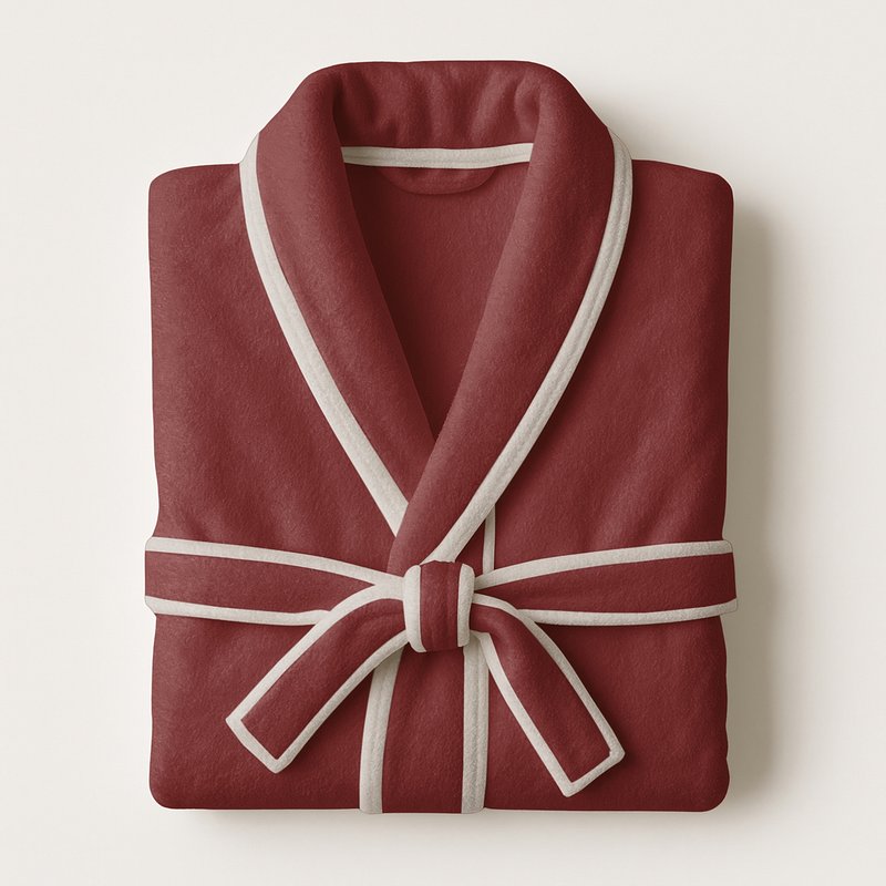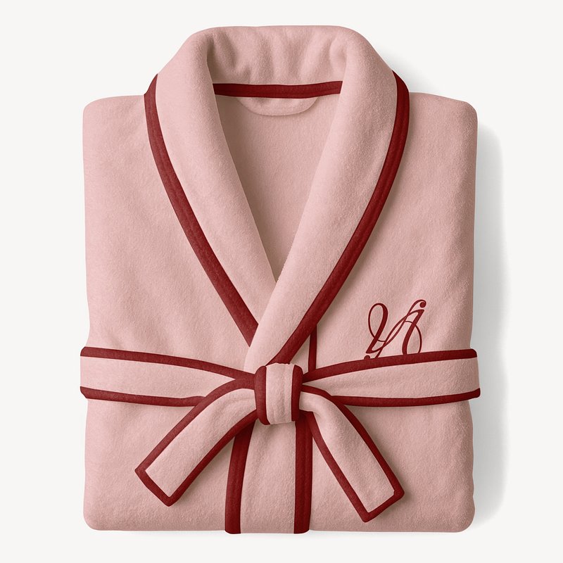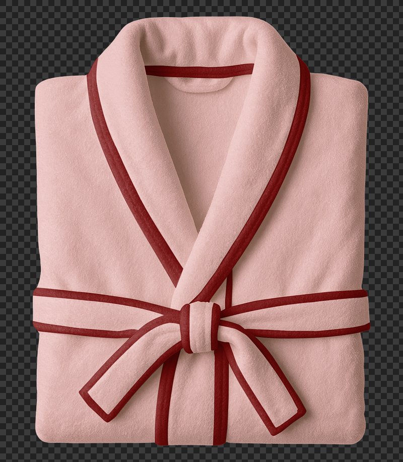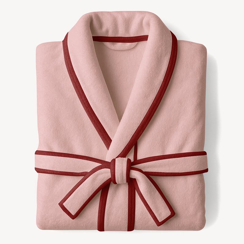 Folded pink bathrobe with red trim and a tied belt https://www.rawpixel.com/image/24343186/folded-pink-bathrobe-with-red-trim-and-tied-beltView license