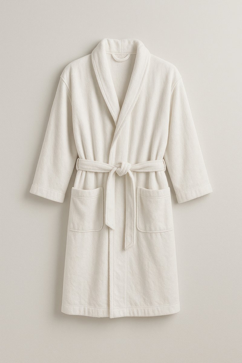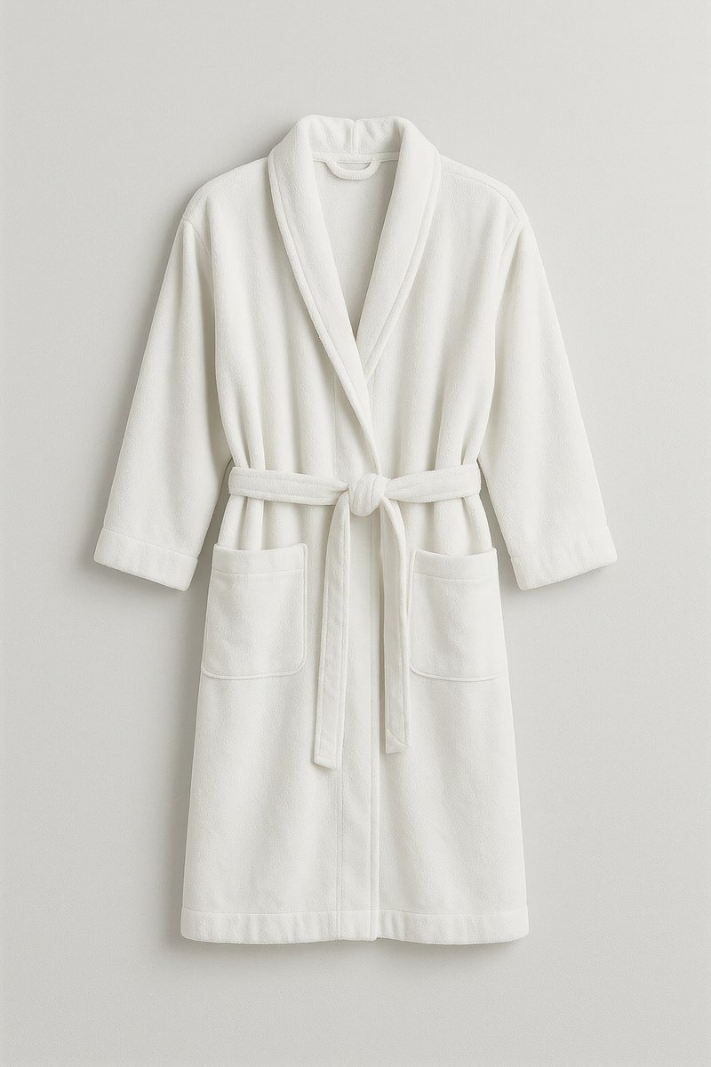 Plush white bathrobe with pockets. https://www.rawpixel.com/image/24512056/plush-white-bathrobe-with-pocketsView license